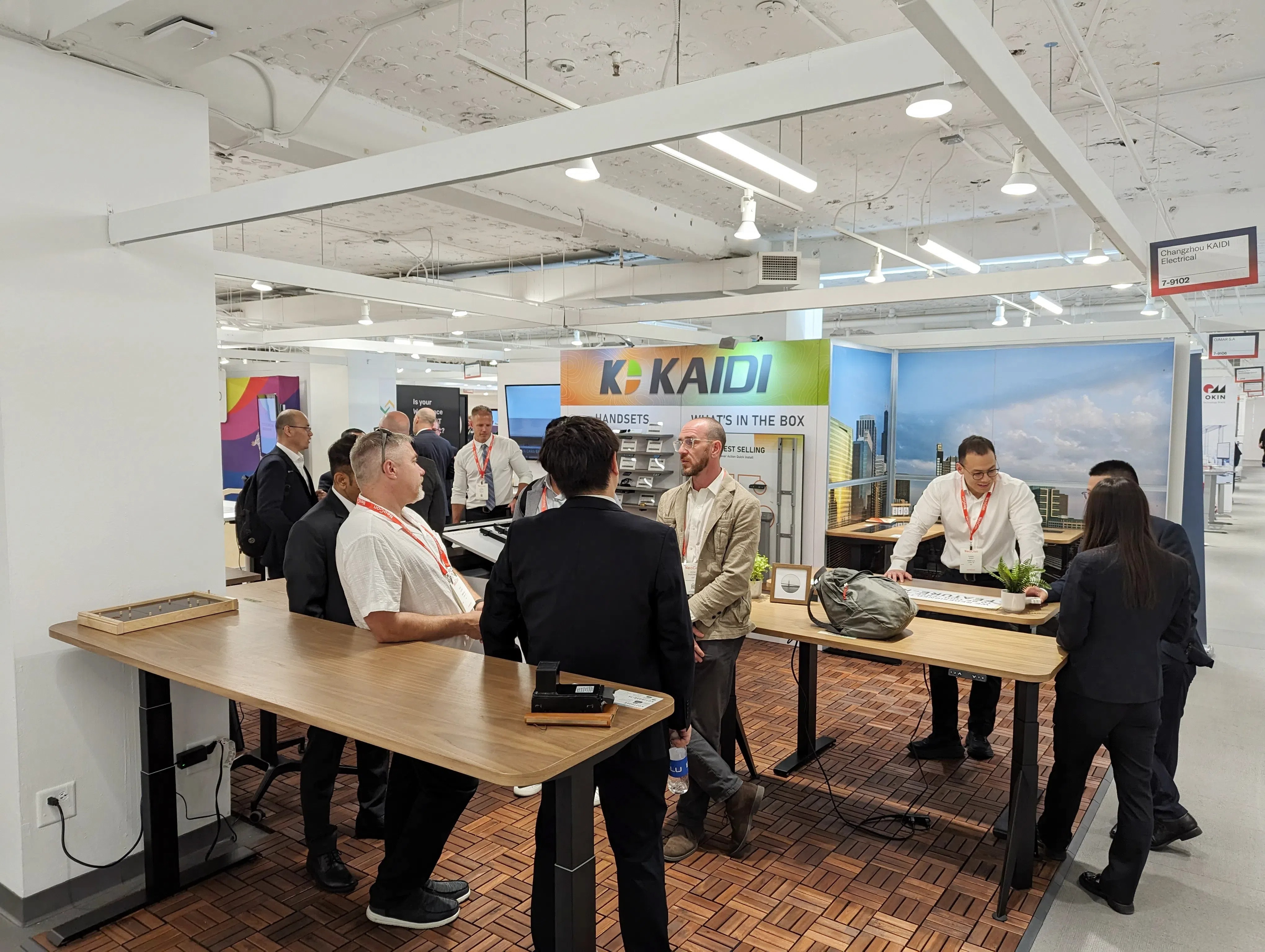 2025年6月9日,美国芝加哥室内设计及办公家具展NeoCon顺利举行!凯迪股份美国团队和国内研发、销售团队携智能升降桌产品,亮相于7-8106展台。NeoCon,作为全球领先的商业室内设计及办公家具展览,同时也是北美规模最大、最具影响力的行业盛会。凯迪股份已经连续多年参展,为家具行业贡献了诸多创新理念和实际应用。本次展会,凯迪股份向参观者展示了全球领先的快速安装产品方案,无需任何工具即可轻松实现快捷、简便的安装过程。展台配备的快速组装版本桌架,确保客户能够随时体验到组装的简便与高效。升降立柱、控制盒、脚板等系统组件的快速组装设计,实现即插即用,不仅提高了安装效率;还支持组件的单独拆卸,显著减少了客户在维修、仓储和运输方面的总体成本。此外,展会现场最受关注的是Variable与Fourtress两款智能升降桌产品方案。单工位桌型设计,演绎出多立柱同步驱动运行的强大推力与载重实力,胜任多种空间场景。Variable,采用全新设计框架结构,三电机强劲驱动同时升降,均匀分解承托力,运行更顺畅。三立柱桌推具备出色的稳定性,整桌满足90°、120°、180°三种角度调节,支持更大台面、开阔桌面尺寸,实现桌面区域科学划分。Fourtress,单边双柱桌推支撑设计,四电机同步驱动,行程663mm,整桌最大负载250kg,自锁300kg。相比其他单工位升降桌,Fourtress有着更大的推力和承重性能,整体结构更稳定。作为备受瞩目的家具行业盛会,NeoCon构建了一个全球性的专业展示与交流平台。凯迪股份希望通过这个平台,携手我们的合作伙伴和客户,共同探索家具行业发展的无限潜力,推动行业向着智能化、高效化、可持续化的崭新未来迈进!